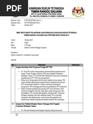 Contoh Minit Mesyuarat Awal Tahun Krt Pdf